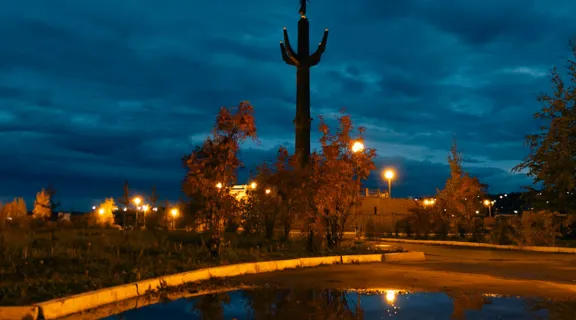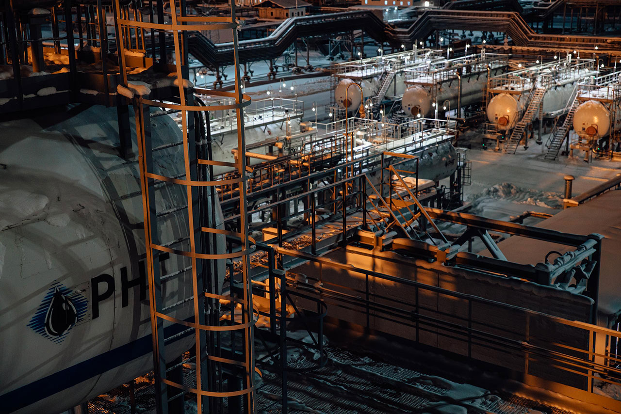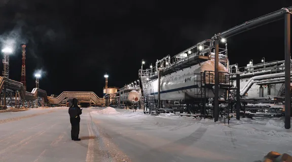 傍晚灯光中的中央处理站(CPF)