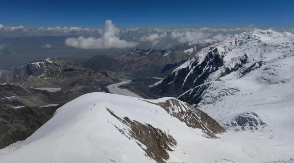 RNG股份公司71岁员工亚历山大·缅绍夫计划征服共产主义峰与科尔热涅夫斯卡娅峰——帕米尔著名的七千米级山峰。为纪念伟大卫国战争胜利80周年,胜利旗帜将在峰顶展开。RNG股份公司将提供资金支持此次探险活动。