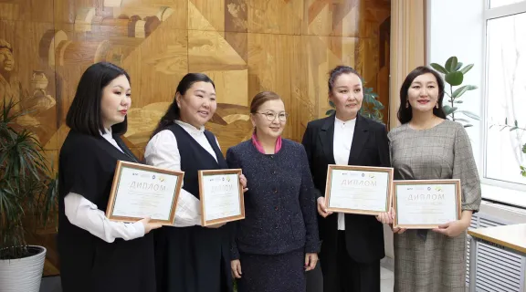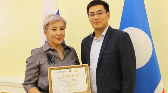 Дипломы победителям вручали руководитель представительства АО «РНГ» в Якутске Тимофей Егоров и и. о. министра образования и науки Республики Саха (Якутия) Нюргуна Соколова.