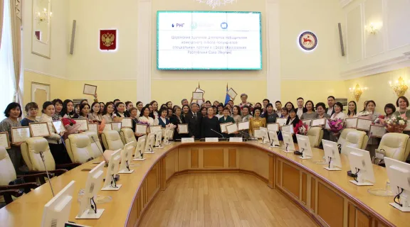 Тэрээһин Саха сиригэр иккис төгүлүн хампаанньа уонна СӨ Кэлэр көлүөнэ тус сыаллаах пуондатын кытары бииргэ үлэлэҺии сөбүлэҥэр олоҕуран ыытыллар. 100 бастыҥ педагог 100-түү тыһыынча бириэмийэни туттулар. Кыайыылаахтары эҕэрдэлиир үөрүүлээх тэрээһин СӨ правительствотын дьиэтигэр ыытылынна.