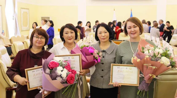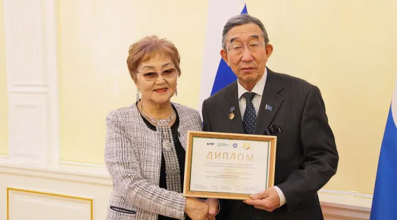 Кыайыылаахтарга димломнары «РНГ» АУо Саха сиринээҕи бэрэстэбиитилистибэтин салайааччыта Тимофей Егоров уонна Саха Өрөспүүбүлүкэтин наукаҕа уонна үөрэхтээһиҥҥэ миниистирин эбээһинэһин толорооччу Нюргуна Соколова туттардылар.
