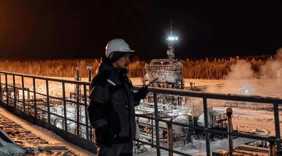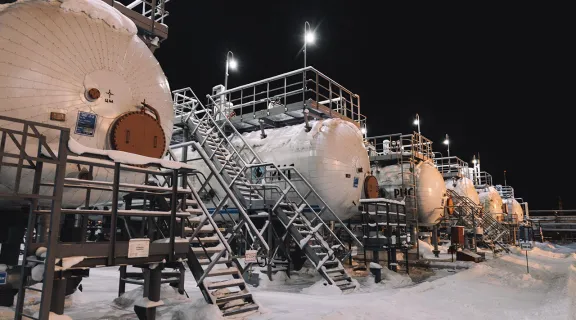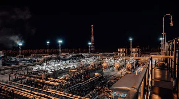 傍晚灯光中的中央处理站(CPF)