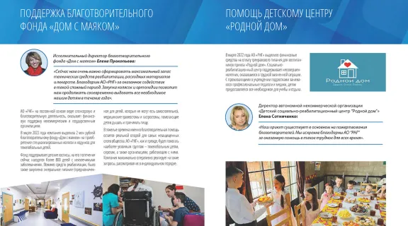 The Company regularly conducts sponsorship and charitable activities, provides financial support to the most vulnerable groups of the population, non-profit and government organizations in Russia. In March 2022, the company provided assistance by allocating funds to the House with a Lighthouse Charity Foundation and the Native Home Children’s Centre.