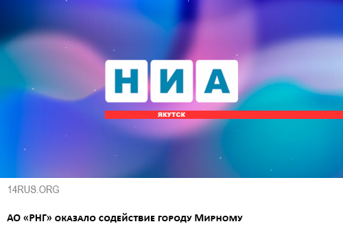 Компания АО «РНГ» является давним партнёром г. Мирного и Мирнинского района Республики Саха (Якутия) в реализации значимых социально-экономических и инфраструктурных проектов.