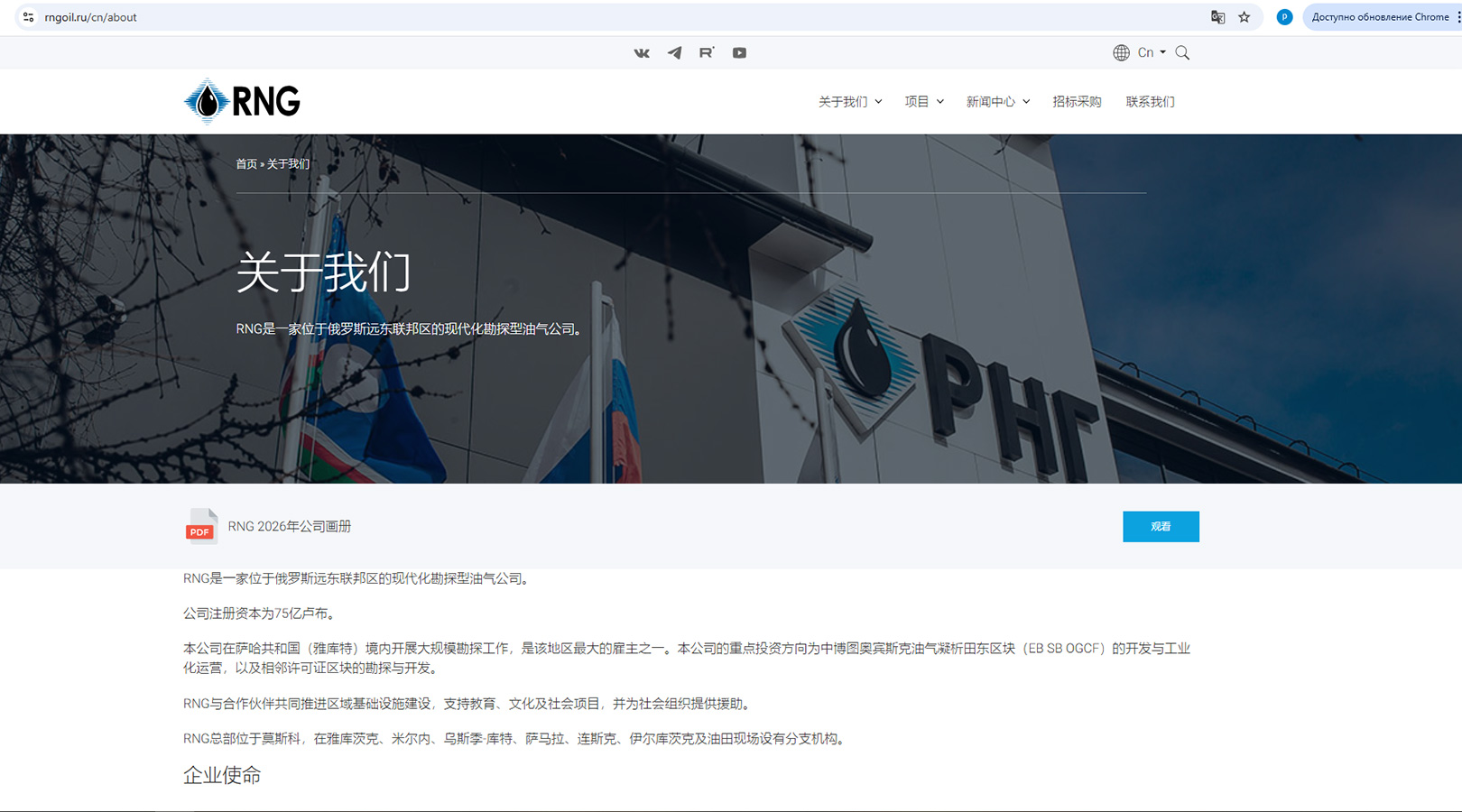 Компания объявляет о запуске китайской версии официального сайта: https://rngoil.ru/cn/. Новый ресурс упростит взаимодействие с партнерами из Китайской Народной Республики.